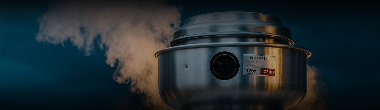 Compact and efficient extractor fan for food trucks, featuring a 230W motor, automatic louvers, and weather-resistant design. Ideal for maintaining ventilation and removing heat, smoke, and grease from tight spaces.